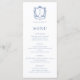 Elegantes französisches Rose Blue Monogram Wappen Menükarte