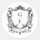 Elegantes französisches Rose Monogram Wappen Weddi Runder Aufkleber