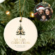 Elegantes fröhliches Pine Tree Bow Family Foto Keramik Ornament