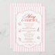 Elegante Merry and Bright Corporate Christmas Party Company Holiday Party Einladungen bieten schlichte, kallistische Weihnachtselemente auf einem rosa und weiß gestreiften Hintergrund mit dem Text "Merry & Bright" in eleganter roter Kalligraphie Schrift Typografie. Stilvoll, trendig und elegant für Ihre Corporate Holiday Party. Erstellt von Evco Studio www.zazzle.com/store/evcostudio