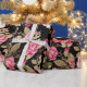 Elegantes Frühlingsholzmuster mit Blumen. Diese gürtliche, stilvolle, schicke, lebendige Kollektion von Rose, glänzenden Imitaten goldene Blätter, Blüten, Gartenfrühlingsblumen, in Rosa, Korallen, Blau, Gelb und Schwarz Hintergrundfarben, ist perfekt für den Alltag, besondere Anlässe oder Feiern. Ein Kunstwerk, Kunstwerk, Illustration, romantisch, einzigartig, Mode, glücklich, jung, populär, modern, hübsch, phantastisch, cool, Bild.