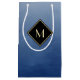 Mit dieser eleganten und stilvollen blauen und schwarzen Monogramm-Geschenktasche erleben Sie die Aufmerksamkeit. Dieses einfache und raffinierte Design mit gebürstetem Farbverlauf mit einem modernen, diamantförmigen Rahmen mit Goldrahmen kann personalisiert werden, indem Sie Ihren mit Monogramm Anfang hinzufügen. Flachbild, NICHT metallisch.