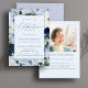 Dies ist eine elegante und moderne Begräbniskarte, um das Leben Ihrer Lieben zu feiern. Das Design zeichnet sich durch einen wunderschönen kalligraphischen Schriftart und zarte botanische Blau-, Grün-, Weiß- und Silbertöne mit einem Foto auf der Rückseite aus. Diese Einladung kann leicht mit Ihrem eigenen Foto und Text personalisiert werden, um eine besondere Hommage für die Beerdigung, Gedenkfeier oder Feier des Lebens Ihrer Lieben mit der bereitgestellten Vorlage zu schaffen. Bitte kontaktieren Sie den Designer, wenn Sie Fragen zu diesem Design oder zu passenden Produkten haben.