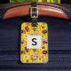 Elegantes gelbes Blumenmuster Monogramm Gepäckanhänger