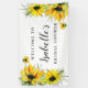 Die hellgelben Sonnenblumen sind eingebettet in schlängelgrüne Blätter und Weinreben. Offene, schwarz-weiße Reben und Blätter geben ihm ein offenes und luftiges rustikales Boho-Ambiente.