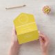 Gelbe, minimale, schicke, elegante, rustikale, moderne gefaltete Ehe, QR-Code Hochzeit alles in einer Einladung. Das dreifache, budgetäre Set. Sie können es mit Ihren eigenen Daten personalisiert.