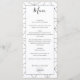 Dieses Design zeichnet sich durch ein elegantes geometrisches Schwarz-Weiß-Muster aus. Der geometrische Muster-Hintergrund bildet den perfekten Hintergrund für die Hochzeitsdetails. Die Kombination aus Schwarz und Weiß schafft einen eleganten, trendigen und eleganten Stil. Elegantes Hochzeitsmenü-Kartendesign mit modernen Elementen. Die moderne Gestaltung der Typografie verleiht ihr einen besonderen Stil. Auch die passenden Hochzeitseinladungen und andere Schreibwaren sind verfügbar.