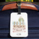 Dieses einfache und elegante Gepäckanhänger ist der perfekte Weg, um unterwegs Ihre Sachen behalten. Das Design besteht aus handbemalten Aquarellkoffern in blau, braun, grün und rosa. Es gibt auch einen braunen Text im Monogramm "CJE", der so geändert werden kann, dass er auf die Initialen eines jeden passt.