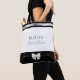 Ehre deine rechte Hand mit einem Geschenk, das Luxus ausstrahlt. Diese Brautjungfern-Tasche hat eine ziselierte Cinzel-Schrift und eine elegante monochrome Ästhetik. Das einzigartige silberne diamantene Hardware-Style-Grafik und das breite schwarze Band vermitteln ein "Designer-Label"-Gefühl. Diese große, hochwertige Tasche ist perfekt, um die wichtigsten Dinge für den Hochzeitstag stilvoll zu verstauen. Ein Muss für die organisierte, moderne Brautjungfer, die sauberes, anspruchsvolles Design schätzt.