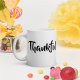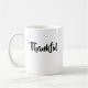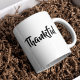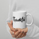 Eine preisgünstige Tasse. Mit "Dankbar" in einem eleganten Skript-Schriftart, geschaffen als ein erschwingliches Erntedank Geschenk für Ihre Familie und Freunde an den Erntedank-Urlaubstisch, wenn Sie alle auf Truthahn und Wein trinken. Zeigen Sie ihnen, dass Sie dankbar sind, sie als Familie und Freunde zu haben.