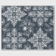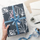 Feiern Sie die magische und festliche Ferienzeit mit unserem kundenspezifischen Feiertags-Packpapier. Unsere eleganten FeiertagsAusrüstungsbeschreibungen unser eigenes Hand gezeichnetes Blatmuster-Schneeflockemuster gegen einen tiefen Marineblauhintergrund. Fertigen Sie mit Ihrer Initiale besonders an. Alle Illustrationen, die in diesem eleganten Weihnachtsblatmuster-Schneeflocke-Packpapier enthalten werden, sind- von Hand gezeichnete Originalvorlage durch Moodthology.