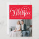 Wünschen Sie Ihren Freunden und Ihrer Familie einen schönen Urlaub, indem Sie ihnen unsere "Gesegnete Script" Urlaubsfotokarte schicken. Die Weihnachtskarte zeigt Ihr liebstes Foto mit Gesegnet in einer weißen Kreide handbuchstabiert vor einem roten Hintergrund. Personalisieren Sie die Urlaubskarte, indem Sie einen individuellen Gruß und den Namen Ihrer Familie hinzufügen. Die Rückseite der Karte weist ein rotes und weißes Muster aus heiligen Beeren und Blattwerk auf.