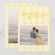 Erzählen Sie Ihren Hochzeitstag mit unserer modernen, aber eleganten Save the Date-Hochzeitskarte in einem oh-so hübschen Buttergelb-Farbton. Dieses Design zeichnet sich durch prächtige Streifen in abwechselnden Buttergelbtönen auf der Vorder- und Rückseite aus, die eine elegante, schicke Touch verleihen, während sie frisch und trendig sind. Das Design ist "Save the Date" in einem klassischen Kalligraphieskript mit nostalgischem, Vintagem Gefühl und einer Touch von Launen geschrieben. Sie werden sicher Ihre Lieben mit dieser einzigartigen Save the Date Karte wecken!