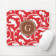 Elegantes girly rotes Blumenmustermonogramm Mousepad