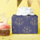 Dieses Verpackungspapier weist elegante und glamouröse Imitate mit goldfarbenem Folienmuster auf marineblau Hintergrund auf.