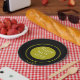 Dekorieren Sie Ihr Silvesterabend-Party mit diesem eleganten Teller Der Teller mit schwarzem Hintergrund und einem goldenen Einzugskreis, der "Happy New Year" liest, und an diesem Boden ist Platz für das Jahr.