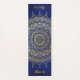 Herrliche, kreisförmige Mandala Design Yoga-Matte in leuchtendem Gold auf tiefblauem Hintergrund, inspiriert von mehndi henna Körperkunst, personalisieren Sie mit Ihrem Namen oder anderen Texten, oder entfernen Sie Text, wie gewünscht.