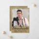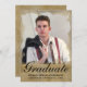 Mit dieser eleganten, individuellen Foto Graduiertenankarte verkünden Sie Ihren Abschluss 2023 stilvoll. Dieses Design zeigt Ihr Foto an der Vorderseite, umgeben von einer rustikalen Goldstruktur. Unten ist das Wort "Graduate" in schwarz Skript mit Ihrem Namen und Schule zu personalisieren. Die Rückseite der Karte hat eine goldene Textur des Imitats. Entworfen von Susan Coffey.