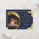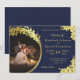 Elegantes Gold, Blau mit Lilies Foto Hochzeit Einladung