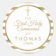 Elegantes Gold Cross Stripe Erste Heilige Kommune Runder Aufkleber