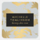 Ein Vintag inspiriert Imitat goldenes Blumenmuster schafft einen schönen Rahmen für diese eleganten personalisierten Aufkleber. Ihr Name oder Ihr Firmenname wird in einem gerahmten schwarzen Kasten stilvoll angezeigt. Ideal für Produktetiketten, Crafters, Hautpflegeprodukte, Kerzen, zum Abdichten von Umschlägen oder Packungen oder zur Personalisierung Ihrer Büro- oder Schulbedarf. Kunst und Design © 1201AM Design Studio
