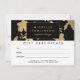 Ein Vintag inspiriert Imitat goldenes Blumenmuster schafft einen wunderschönen Hintergrund auf dieser individuell anpassbaren Geschenkgutscheine-Vorlage. Ihr Name oder Firmenname wird in einem gerahmten schwarzen goldfarbenen Namensschild auf der Vorderseite stilvoll dargestellt. Ideal für Salons, Boutiquen, Schminkkünstler, Wellness-Center und vieles mehr. Dieses Produkt ist Teil einer Reihe von aufeinander abgestimmten Büroartikeln, die Ihrem Unternehmen helfen sollen, Ihr Geschäft zu markieren. Kunst und Design © 1201AM Design Studio | www.1201am.com