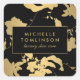 Elegantes Gold Floral Pattern Schwarz Quadratischer Aufkleber