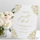 Schauen Sie sich dieses stehende, elegante Gästebuch des Fotos an, das Sie in Ihrem Gästebuchbereich für Hochzeiten im Foto vorfinden. Dieses elegante Hochzeitszeichen besticht durch ein Vintages Design an den Ecken und eignet sich hervorragend für eine stilvolle und anspruchsvolle Goldhochzeit. Weitere passende Produkte finden Sie unten.