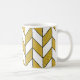 Diese moderne Tasse zeichnet sich durch ein elegantes Zickzack Design mit einem geometrischen Herringbone-Muster in weiß und Imitat goldfarbenen Glitzer mit schwarzen Linien aus.
