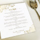 Diese wunderschönen Hochzeitsmenüs sind einfach, elegant und stilvoll, aber dennoch preisgünstig. Sie zeichnen sich durch ein elegantes und glamouröses Design aus, das mit goldenen Imitate-Folienspitzen und Schriftzeichen auf weißem Hintergrund besticht. Die Rückseite ist eine schöne goldfarbene Marmorfarbe.