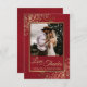 Diese wunderschönen krummen Hochzeitskarten in Rot- und Goldfarben zeigen Ihr Foto in einem goldenen Rahmen aus Imitaten, umgeben von verzierten goldenen Spitzen-Gürteln und Wirbel. Die Beschriftung lautet: Liebe und Danke, mit Ihren Namen unten. Einfach, stilvoll und elegant, ist diese Dankeschön-Karte der ideale Weg, um Ihre Freunde und Familie lassen, wie sehr Sie ihre Liebe und Unterstützung zu schätzen wissen.