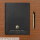 Verbessern Sie Ihre berufliche Präsenz mit unserem Black Leather Luxury Gold Initial Subject Spiral Notebook. Mit einem gebürsteten Goldmonogramm, das mit Ihrem Firmennamen und Informationen in zeitloser goldener Typografie versehen ist, präsentiert sich das gesamte Set vor einem edlen Hintergrund aus schwarzem Leder. Dieses Notizbuch verbindet Stil und Funktionalität nahtlos und ist somit eine ideale Wahl für Berater und Beratungsunternehmen. Erleben Sie Ihre Gedanken, Ideen und Pläne mit Eleganz und spiegeln Sie Ihr Engagement für Exzellenz wider. Mit diesem raffinierten Notizbuch, einem unverzichtbaren Tool, das Raffinesse und Praxisnähe verbindet, können Sie Ihre Erfahrung in der Notenbearbeitung noch weiter vertiefen.