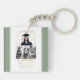 Pastel Green Elegant Gold Ornament Graduation Party 2 Foto Schlüsselanhänger. Ein eleganter personalisierter Abschluss mit einem trendigen Drehbuch und zwei Goldverzierungen. Fügen Sie Ihren Namen und 2 Fotos - Sie können dann und jetzt Fotos des Absolventen.