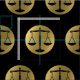Design mit eleganten Grafik Gold Waage des Gerechtigkeitssymbols auf schwarzem Hintergrund.