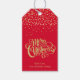 Elegantes Gold Script & Confetti Rotes Weihnachtsf Geschenkanhänger