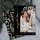 Eleganter Winter Botanische Schwarz-Gold-Kalligraphie-Script 1 Foto Arch Weihnachtskarten. Diese festliche, moderne Weihnachtskarte aus einem Foto mit hübschem Foto mit Kiefernbogen, Beeren und Eukalyptus-Blätter, einem "Frohen Weihnachtsgrüßen"-Grußtext, der in einem kursiven handgeschriebenen, vergoldeten Schriftart aus Schwanz auf schwarzem Hintergrund geschrieben ist. Auf der Rückseite Aquarell Winter botanisches Grün, Beeren, Eukalyptus Blätter, Kiefernnadeln und Äste. Die Weihnachtskarten des Personalisierten Fotos Custom sind eine gute Möglichkeit, die Lieben daran zu erinnern, dass Sie an sie in dieser Winterferien-Jahreszeit denken.