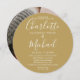 Mit eleganten Stilnamen und einem besonderen Foto ist diese stilvolle kreisförmige Hochzeitseinladung personalisiert mit Ihren Hochzeitsdetails in schicken weißen Schriftzeichen auf goldenem Hintergrund. Entwickelt von Thisisnotme©