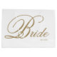 Große Bride Geschenktasche. Elegante goldene Schrift Bride auf weißem Hintergrund mit Hochzeitdatum in klassischem Blocktext unten rechts. Das Hochzeitstermin kann durch Löschen des Textfelds entfernt werden oder durch Hinzufügen von Bräunungs- und Bräutigam-Initialen geändert werden.