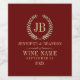 Elegantes, mit Monogramm Weinetikett. Gold und Silberlaurel mit einem anpassbaren Monogramm. Dunkelrot veränderbarer Hintergrund und anpassbare Textvorlage.