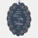 Elegantes Gold Snowflakes Peace Joy Blue Ornament Karte