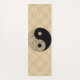 Ein mystisches Yang-Symbol, das auf einer dekorativen, runden Goldrosette aufgezwungen wird, verleiht dem Mysterium eine zusätzliche Dimension. Die Kulisse besteht aus einer Wiederholung der goldenen Blumenkränze auf einer beigen Rückseite. Elegante meditative Vibes