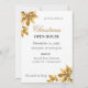 Elegantes Gold und grüner Weihnachtsbaum Open House Einladung. Personalisieren Sie Ihre persönlichen Daten.