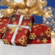 Modernes Weihnachtsdesign in Imitaten Gold und kariert.