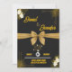 Mit dieser eleganten Hochzeitskarte "Save the Date" zum Thema Gold und Schwarz präsentieren Sie Ihren besonderen Tag. Die luxuriöse goldene Schleife, die zarten weißen Blume und die ausgeklügelte Typografie machen diese Karte zu einem idealen Ort für moderne Paare, die einen eleganten Eindruck hinterlassen möchten. Ideal für feierliche Hochzeiten oder Hochzeiten in Schwarz-Krawatte, Set für ein unvergessliches Fest. Stellen Sie Namen, Datum und Veranstaltungsort individuell ein, um Ihren individuellen Stil Anzug