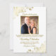 Diese schöne Hochzeitseinladung ist stilvoll, einfach und elegant. Es zeichnet sich durch goldene Schriftzeichen auf klassischem weißem Hintergrund aus, in jeder Ecke sind filigrane Imitate mit Blumenfolie. Das Design beinhaltet Ihr Foto in einem goldenen Rahmen und alle wichtigen Details. Der Rücken hat einen individuell anpassbaren QR-Code und einen Detailhinweis, sodass Sie Ihre Gäste zu einer Website für Informationen und UAWG leiten können.