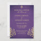 Eine elegante, reiche lila und goldene Damast-Probe. Diese Einladung ist Teil eines Set.