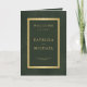 Moderne schlichte minimalistische Typografie dunkle Smaragdgrün und Imitate gefaltete Zeremonie und Party Hochzeitsvorstellung auf einem Vintagen Stil antiken Not leidenden Hintergrund. ++++++++++++ Einfach mit Ihrem Text auf der Vorderseite, hinten und innen personalisieren!