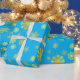 Dieses luxuriöse blaue Packpapier, das mit eleganten goldenen Schneeflocken geschmückt ist, verleiht jedem Geschenk eine Touch Eleganz und strahlt unter jedem Baum aus.