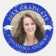 Elegantes Graduate Foto Royal Blue Gold Cap Runder Aufkleber