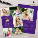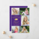 Mit dieser eleganten lila und goldenen (oder anderen Hintergrundfarben) Foto-Ankündigung, die 6 Fotos (5 vorne und 1 hinten), ein elegantes Imitat mit Metallic-Goldfolie-Graduierungspapier oder -plakat, das JAHR-Graduate mit dem Namen Ihres Absolventen in einem trendigen handgeschriebenen Drehbuch und Schulnamen umfasst, kündigen Sie die Leistung Ihres Absolventen an. Der Rücken ist so konzipiert, dass er nach Wunsch Informationen über Ihre Absolventen, Aktivitäten und Zukunftspläne enthält. HILFE: Für Hilfe bei der Modifikation/Personalisierung des Designs, bei Farbänderungen, bei der Übertragung des Designs auf ein anderes Produkt oder wenn Sie die Dinge koordinieren möchten, wenden Sie sich bitte an den Designer, BEVOR Sie über Zazzle Chat oder makeitaboutyoustore@gmail.com bestellen.